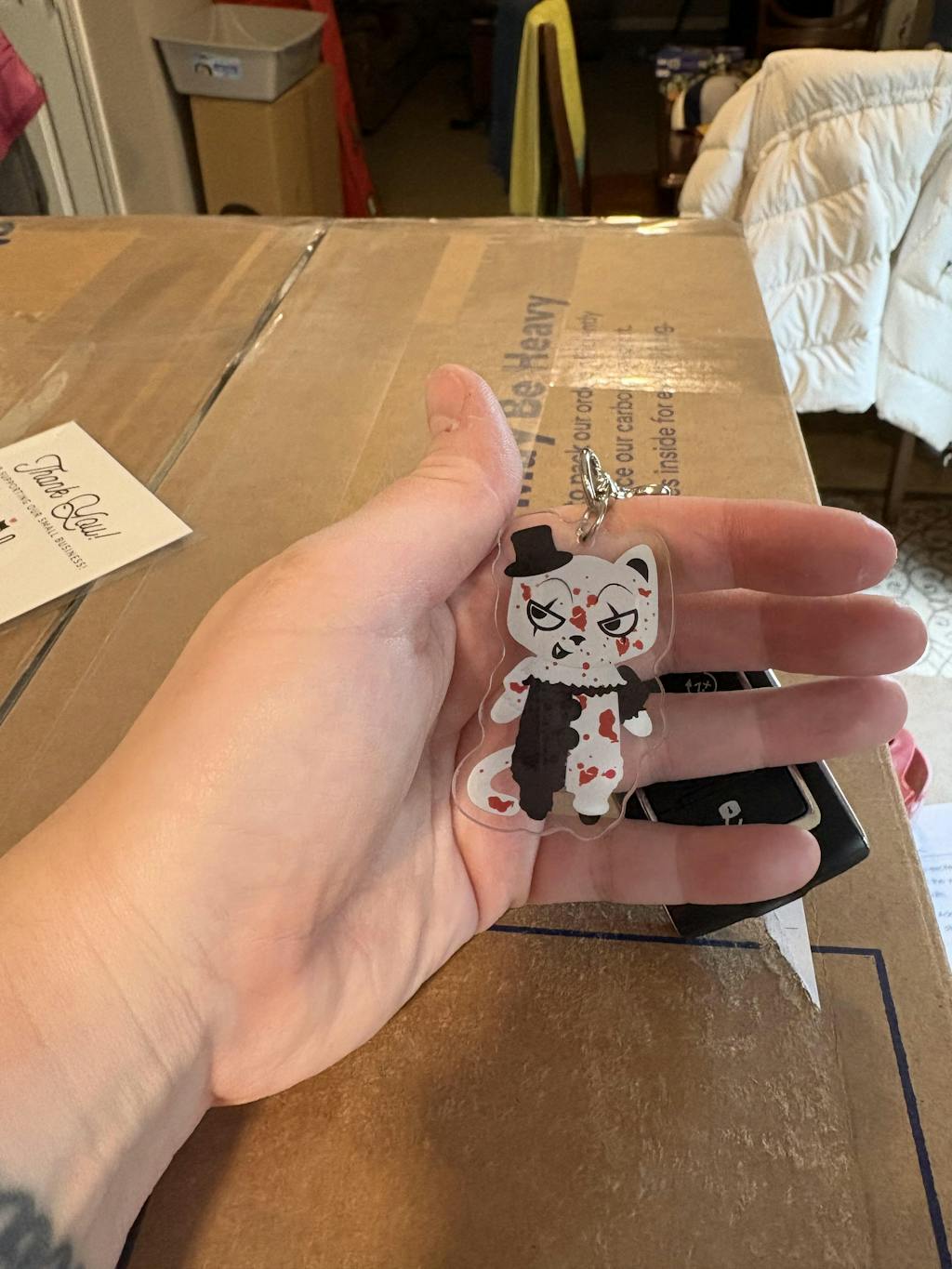 As a crazy cat lady and a lover of horror movies, I was super excited to find this keychain.It’s super durable and is the perfect size for my keys.