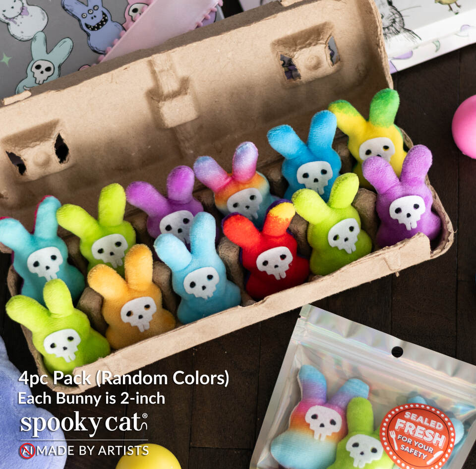 Give your Easterween basket a hauntingly sweet twist with fresh Spooky Mini "Peeps"! We've taken the classic Easter mini-bunnies and resurrected it with handmade felt faces. Each Mini "Peep" bunny plush is carefully crafted to bring a mischief to the spookier side of Easter.