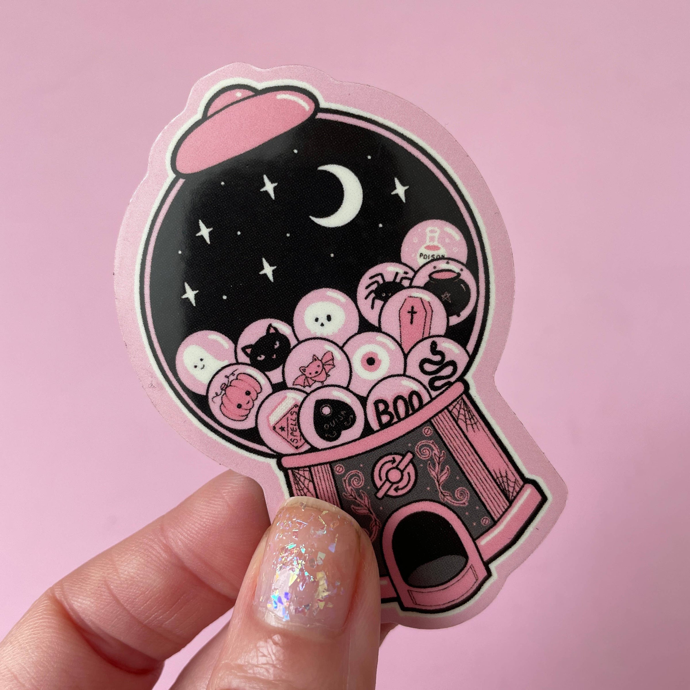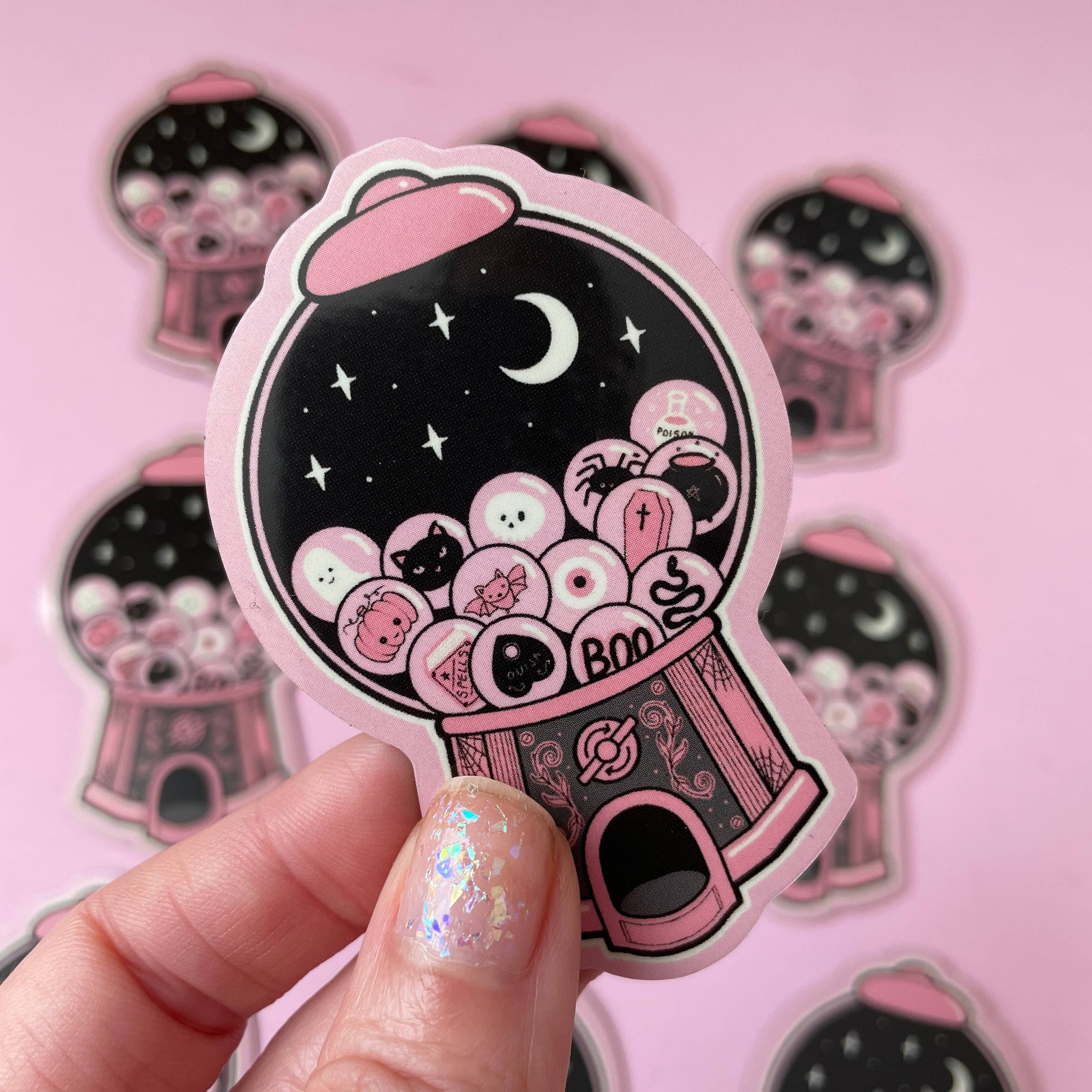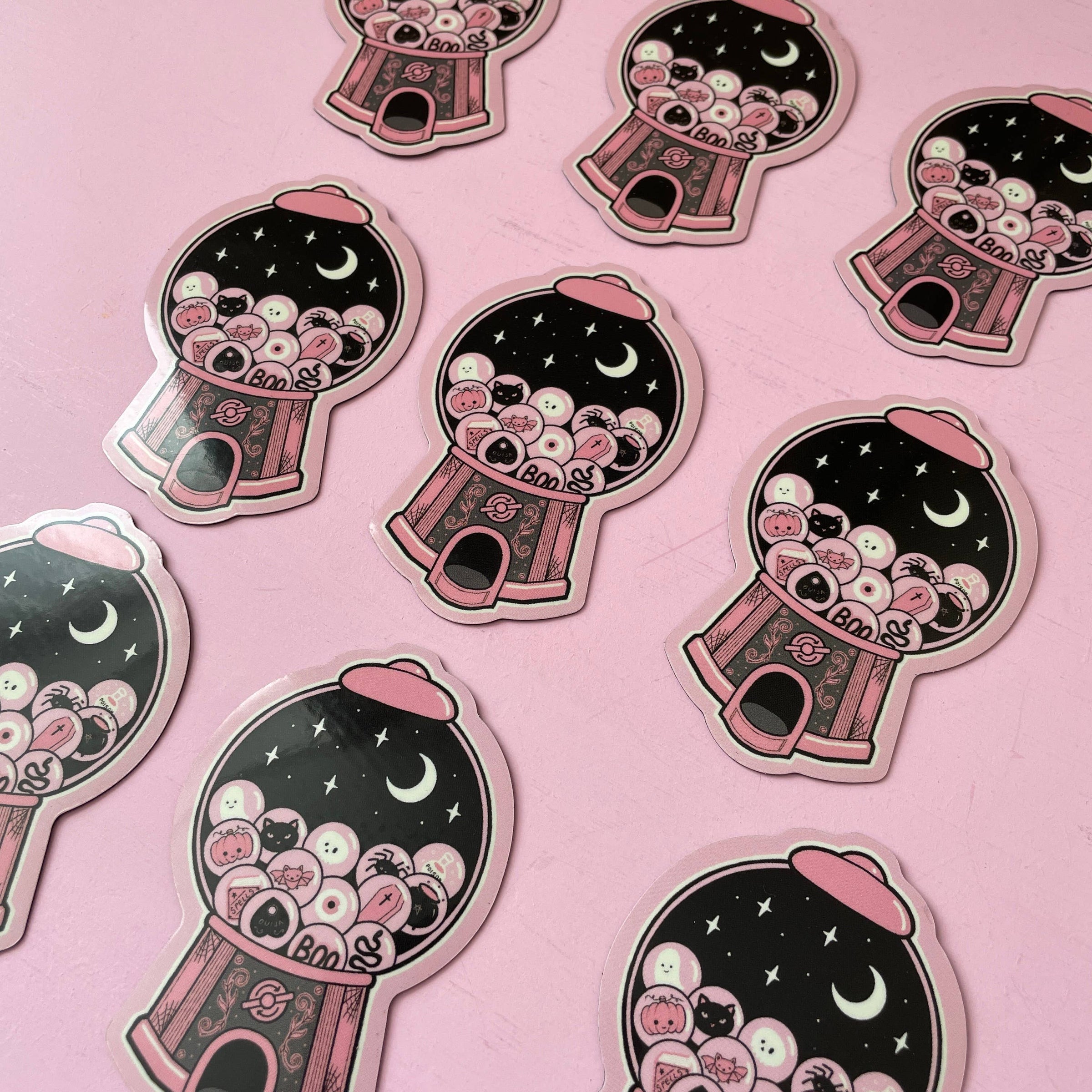 A cute gothic magnet of a pink Spooky Gumball Machine.