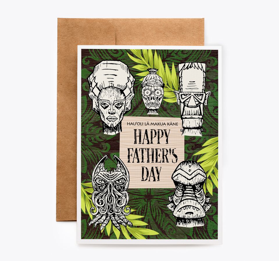 The perfect Tiki Father's Day card for the Big Kahuna. Immerse dad in cool Tiki vibes with this awesome homage to classic monsters.