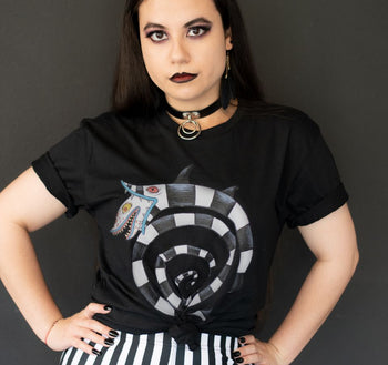 Looking for Goth, Halloween and Classic Horror T-shirts? Can't get enough black tees? Spooky Cat's goth you! Our gothic t-shirts are made per order and ship directly from our printers. Because of this process, we are able to sell our art without limitations and waste 🖤