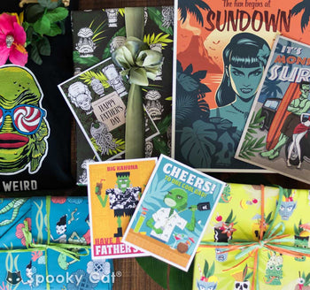 Surprise your hipster dad with a Tiki Father's Day. Shop our selection of Tiki Father's Day cards and Tiki art prints. Immerse Dad in our creepy & spooky tiki goodies, and let him rock the dark side of Tiki.