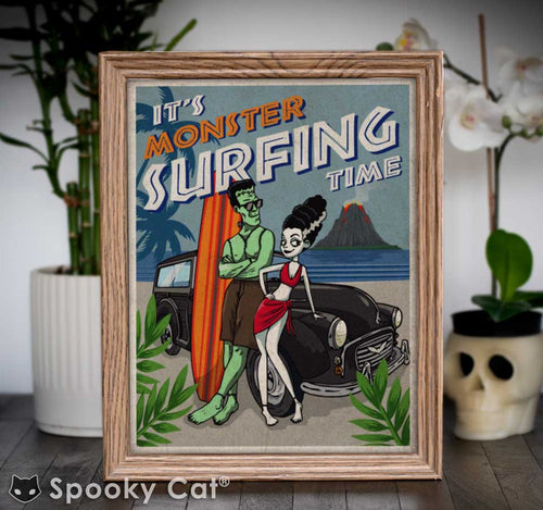 Monster Surfing Tiki Art Print (8x10)