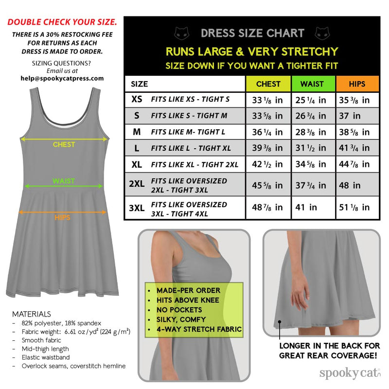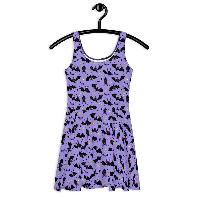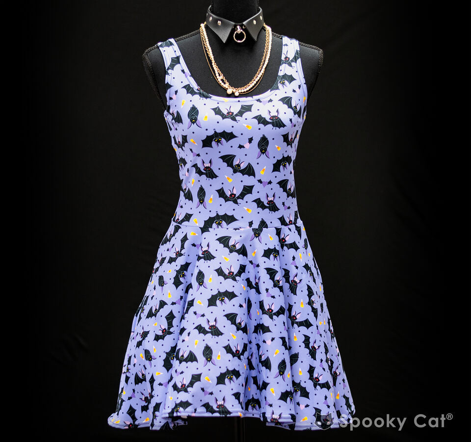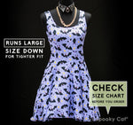 Our Batty Bat Gothic Dress features an adorable bat print. Perfect for fans of cute bats and that goth ghoul who can't resist her favorite familiar. Get into the Halloween spirit with our cute bat dress. Silky and flowy, this fit & flare skater dress is flattering on everyone.