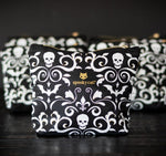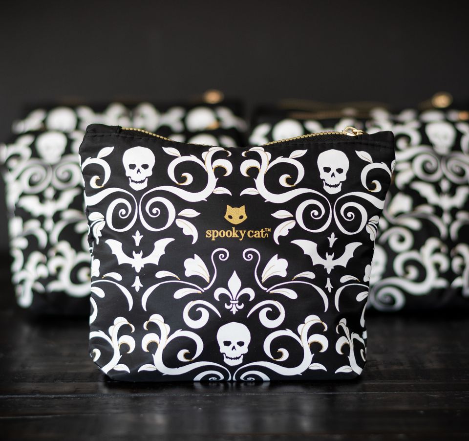 Pretty and practical, store your make up (or spell kit) in this purrfectly sized nylon bag for every witch on the go. Our signature Gothic Damask goes with everything, and the gold accents are to die for.