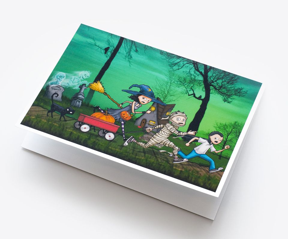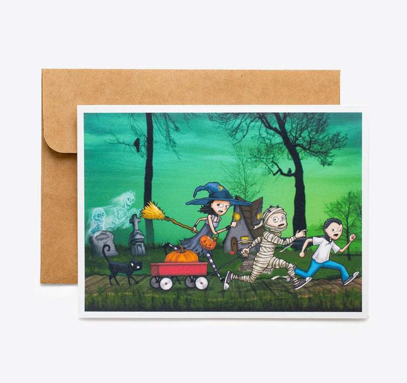 Never look back in a graveyard or a ghost might follow you home. Our Spookytown Halloween Cards inspire nostalgia for those crisp Halloween nights.