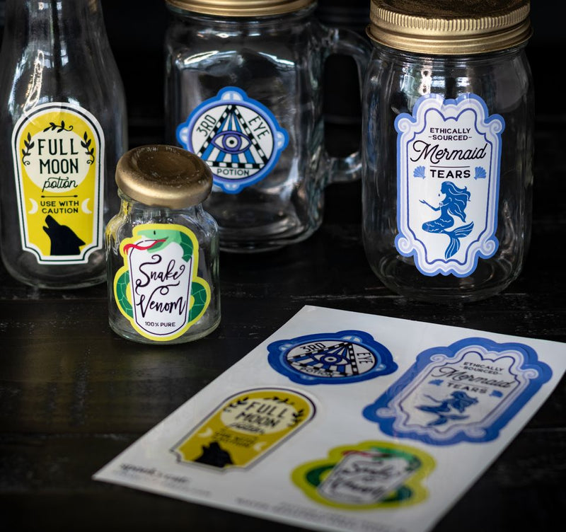 - Collectible decorative Halloween potions label stickers.