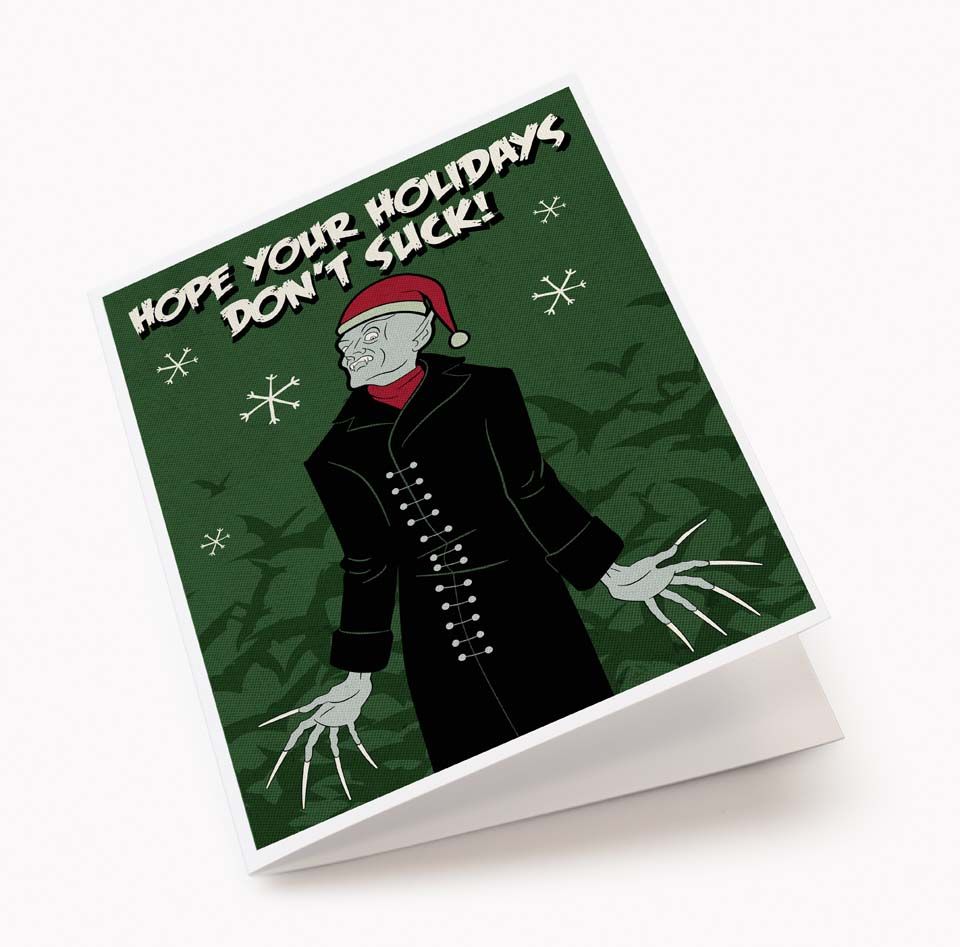 Nosferatu hopes your Holidays do not suck! Be sure to give your blood-sucking friends a fangtastic classic horror Creepmas card this year!