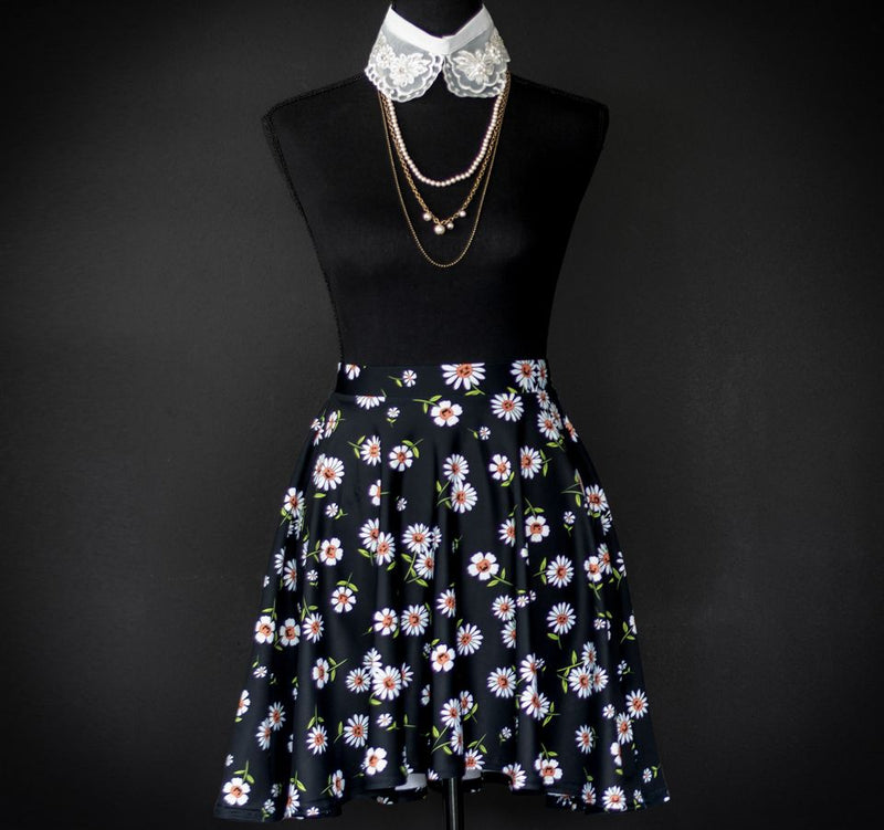 Dress it up or down, this beautiful printed skater skirt goes with everything black. Silky and flowy, this fit & flare skirt is flattering on everyone. Express your alternative & gothic style with effortless comfort. You won't resist the urge to twirl!
