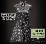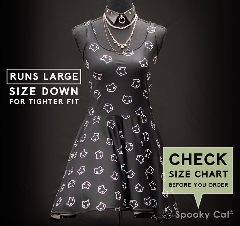 You'll love the way you feel in this Spooky Cat Skater Dress. Your new favorite little black cat dress, for Halloween and everyday in between. The print is a black cat lover's dream and the fit and flare silhouette is flattering on everyone.